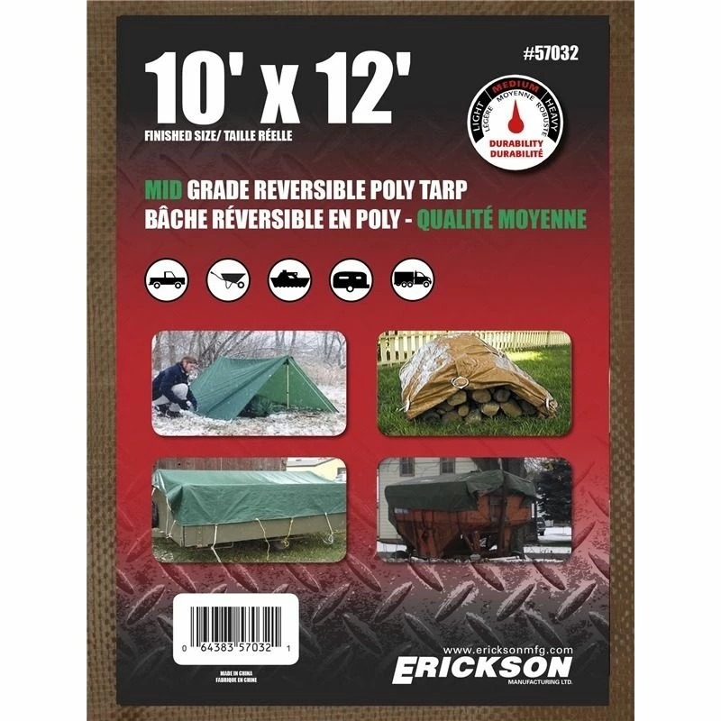 | Product Name | Erickson Mid-Grade Reversible Poly Tarp, Brown / Green, 57032, 10 FT x 12 FT |