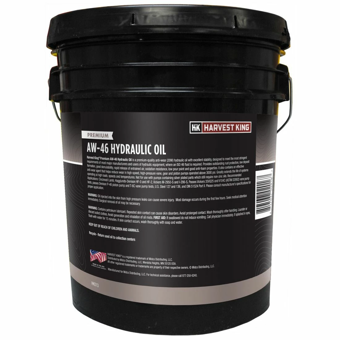 HARVEST KING PREMIUM AW HYDRAULIC OILS are premium quality antiwear hydraulic oils with excellent stability, deigned to meet the most stringent requirements of most all major manufacturers and users of hydraulic equipment. They are formulated using Group II base stocks for increased oxidation performance. These oils are characterized by outstanding rust protection, low deposit formation, good demulsibility, rapid release of entrained air, oxidation resistance, low pour points and good anti-foam properties. They also contain an effective anti-wear agent that helps reduce wear in high-speed, high-pressure vane and gear pumps.